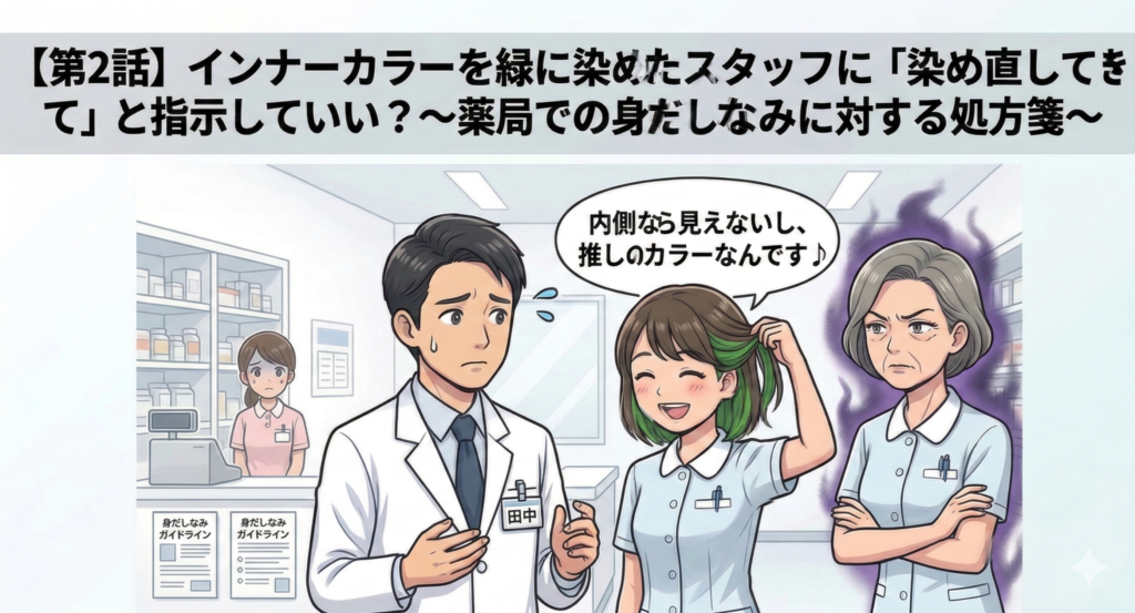 - 【第2話】インナーカラーを緑に染めたスタッフに「染め直してきて」と指示していい?〜薬局での身だしなみに対する処方箋〜