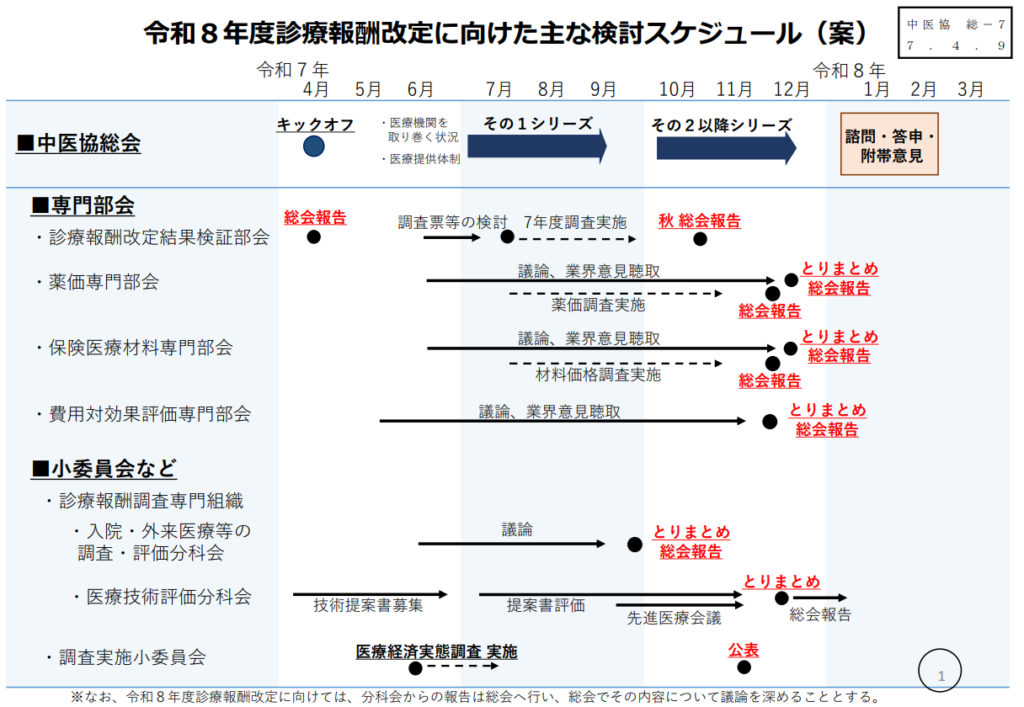 2025年04月09日中央社会保険医療協議会 総会(第606回) 「総-7令和8年度診療報酬改定に向けた主な検討スケジュール(案)」を抜粋