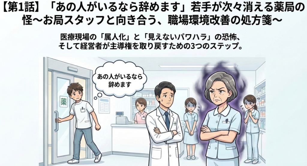 【第1話】「あの人がいるなら辞めます」若手が次々消える薬局の怪〜お局スタッフと向き合う、職場環境改善の処方箋〜