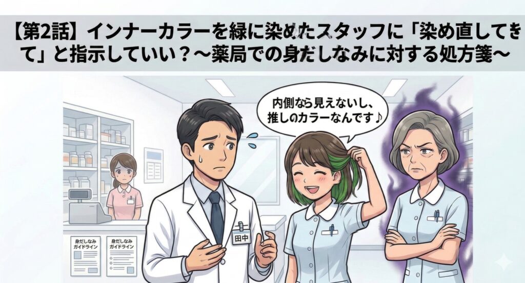 【第2話】インナーカラーを緑に染めたスタッフに「染め直してきて」と指示していい?〜薬局での身だしなみに対する処方箋〜